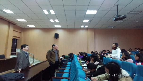2016年11月12日上午有幸邀请1987年毕业于生命科学学院的院友、中学特级教师、基础教育百名名师、基础教育科研先进个人、课程改革指导专家陈振友老师做“中学生物课堂教学设计的智者”报告。陆副院长参加了报告。珍稀濒危动植物生态与环境保护省部共建教育部重点实验室全体研究生聆听了报告,受益匪浅。