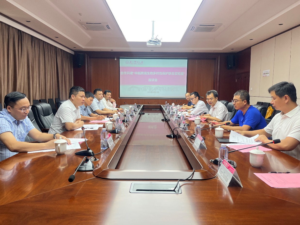 2025年10月17日上午,合作共建“中越跨境生物多样性保护联合实验室”座谈会在育才校区国教中心2号楼召开。越南北江农林大学代表、越南科学技术研究院代表,生命科学学院院长及学科骨干代表等参加会议。