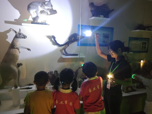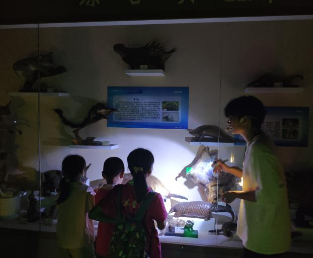 参观环节,志愿者讲解员用生动的语言、有趣的案例,为小朋友们讲解生物多样性的奥秘,带领他们近距离观察各类动物标本,了解动物一般习性,他们偶尔会发出疑问,讲解员耐心解答。参观过程中,工作人员为小朋友们拍照记录,定格下他们探索未知时的专注与惊喜。