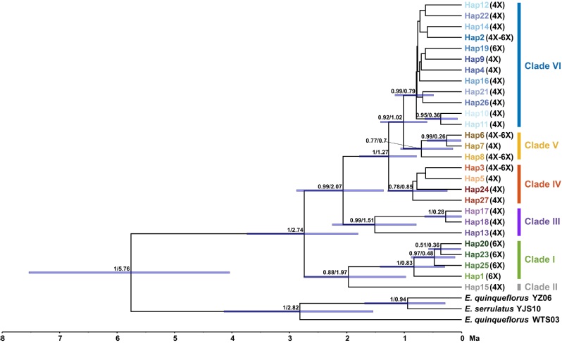 图3 灯笼树复合群叶绿体单倍型分化时间