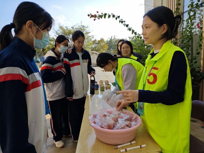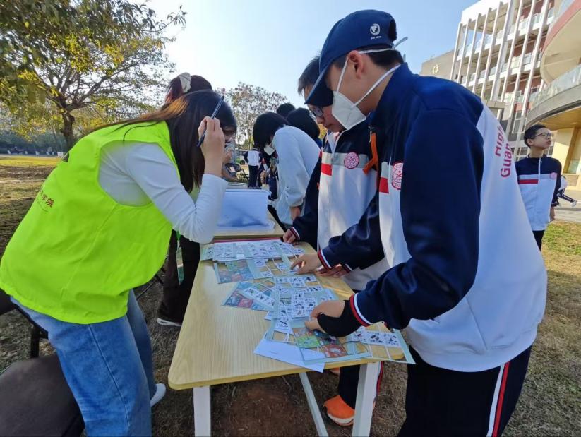 在植物主题展区,志愿者引导学生完成植物鉴定的小游戏,同时也普及了植物的繁育历程,将科普知识与娱乐活动巧妙融合。