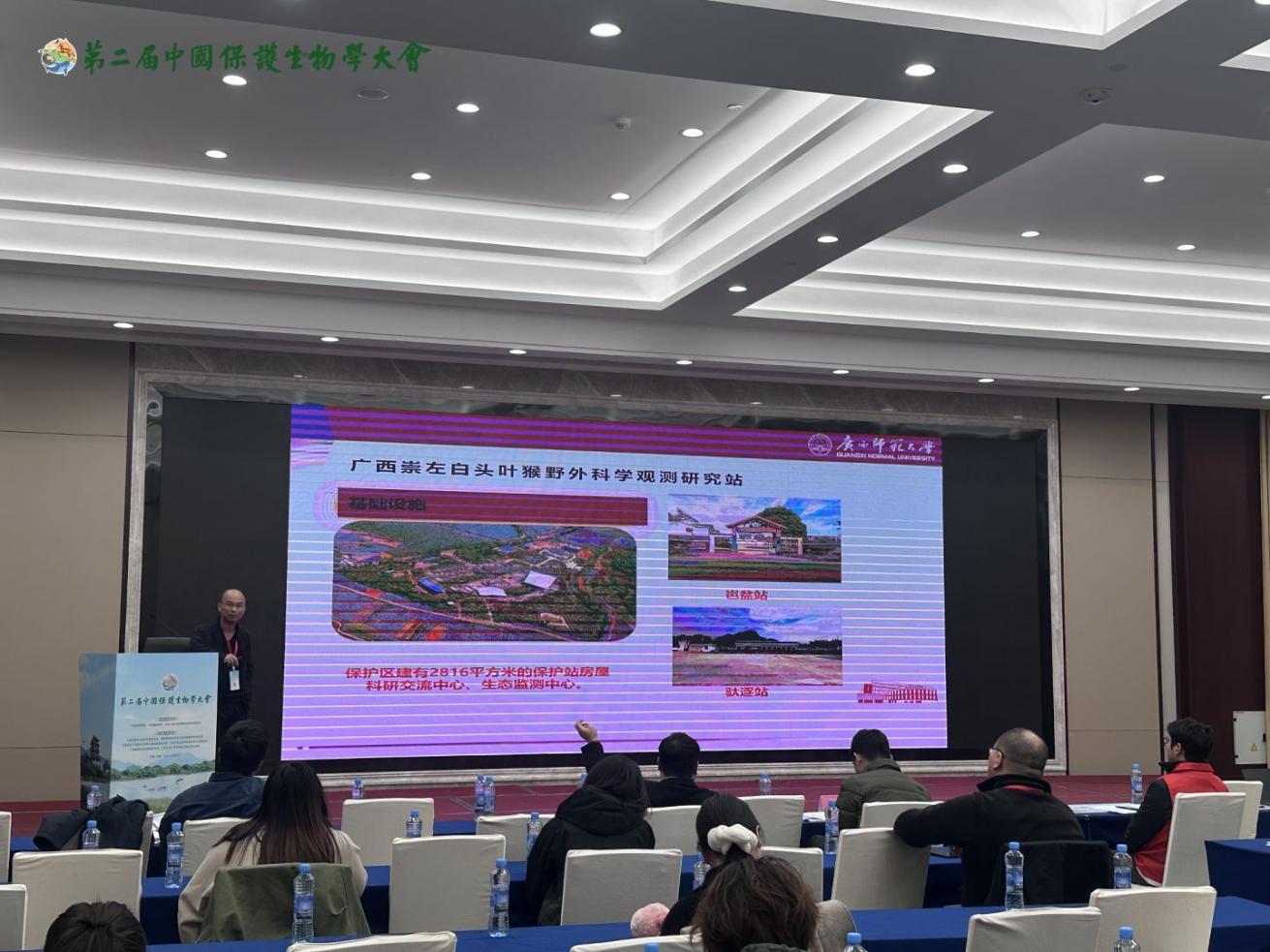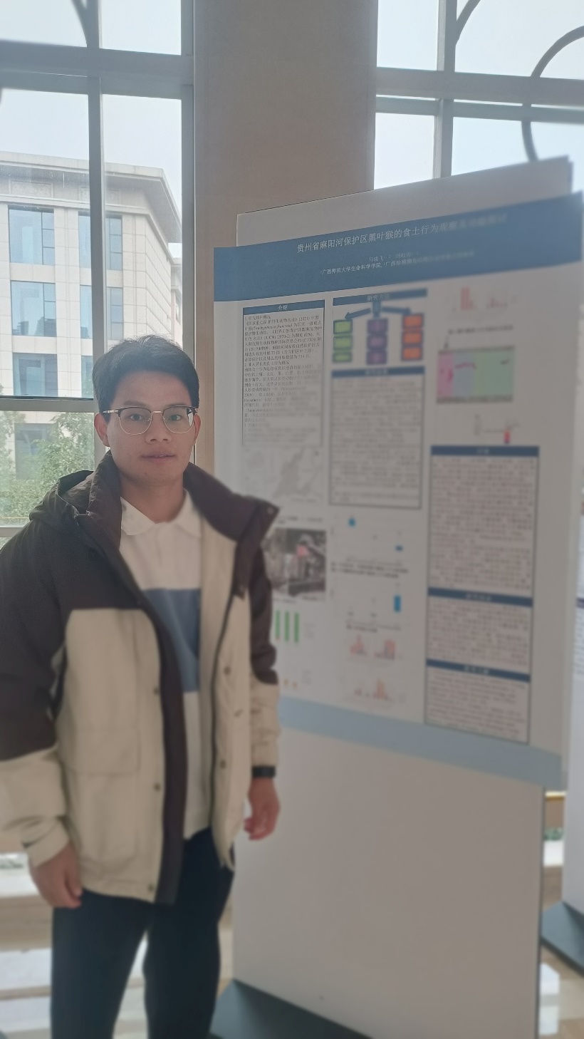 我院周岐海教授及其团队学生一行4人参加了此次大会。会议期间,周岐海教授以《破碎化石山生境中白头叶猴的汞季节性暴露:行为观察是否能促进生态毒理风险评价?》为题在分会场作专题报告。2023级生态学硕士研究生马成飞以《贵州省麻阳河保护区黑叶猴的食土行为观察及功能探讨》为题作了墙报展示。