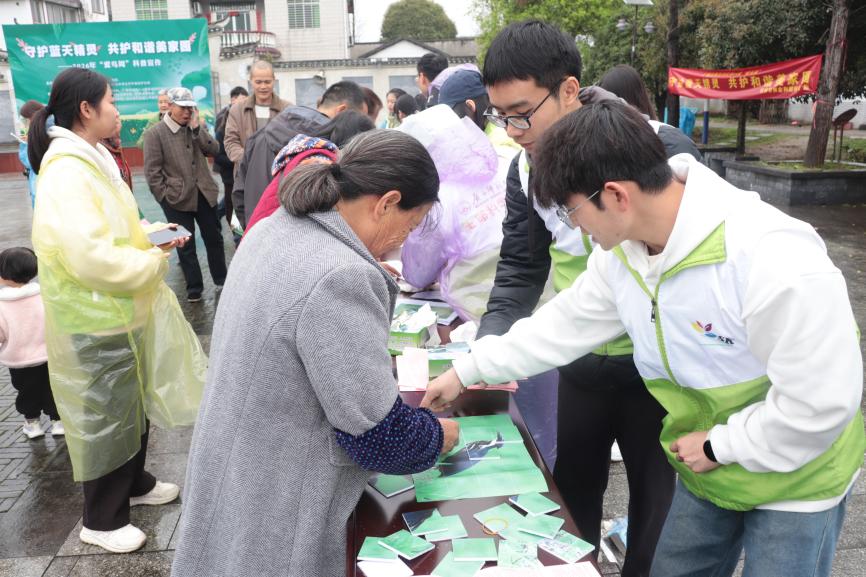 志愿者向灵川县三街镇村民科普爱鸟护鸟知识